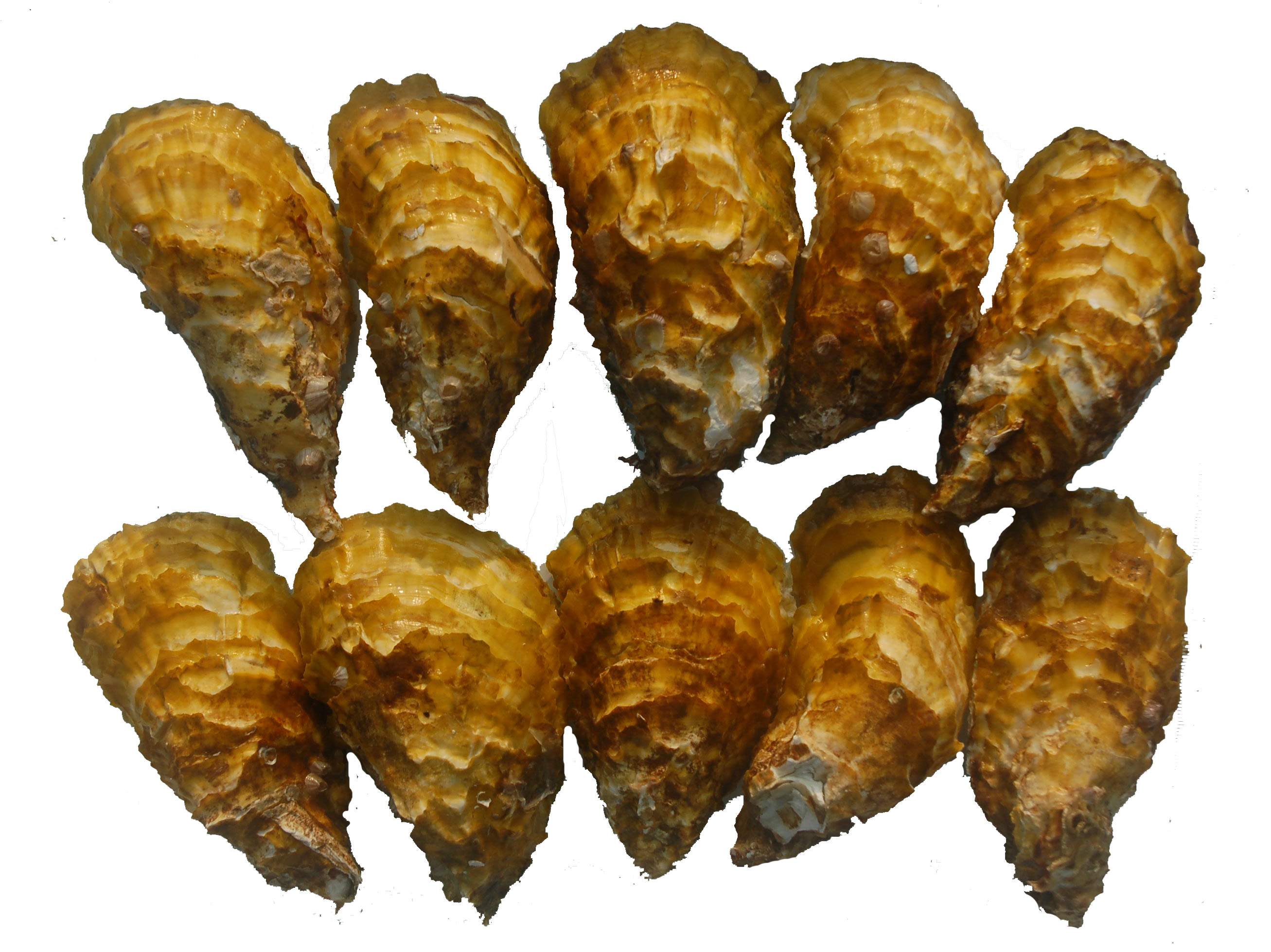 该品种是以2009年收集福建、广东野生和养殖的葡萄牙牡蛎人工繁殖后代2万枚个体构建基础群体,采用群体选育技术,以壳色和生长速度为目标性状,经连续4代选育而成。贝壳金黄色。在相同养殖条件下,与普通养殖群体相比,12月龄贝单体养殖生长速度提高22.0%~37.7%、壳附苗串养提高9.7%~20.5%。适宜在福建及以南沿海养殖。