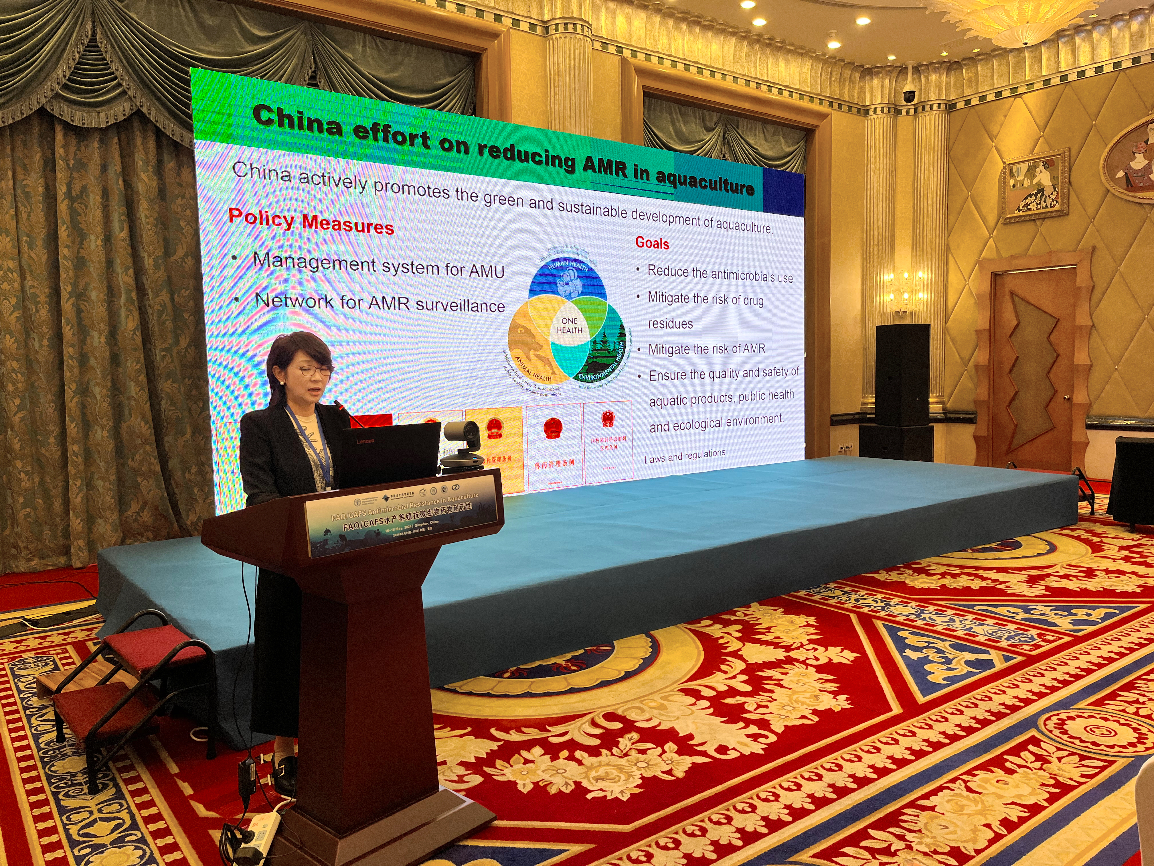 5月16-18日,水产养殖抗微生物药物耐药性技术研讨会在青岛召开,全国水产技术推广总站总工程师李清受邀出席会议并致辞。会议由联合国粮食及农业组织(FAO)渔业和水产养殖业司、FAO水产养殖抗微生物药物耐药性和生物安全保障参考中心、海水养殖生物育种与可持续产出全国重点实验室共同主办。来自FAO、世界动物卫生组织(WOAH)和亚太水产养殖中心网(NACA)等涉渔国际组织,FAO参考中心以及中国、印度、英国、美国、孟加拉国、伊朗、沙特阿拉伯、马来西亚、尼泊尔、菲律宾等10个FAO/NACA成员国相关代表参会。