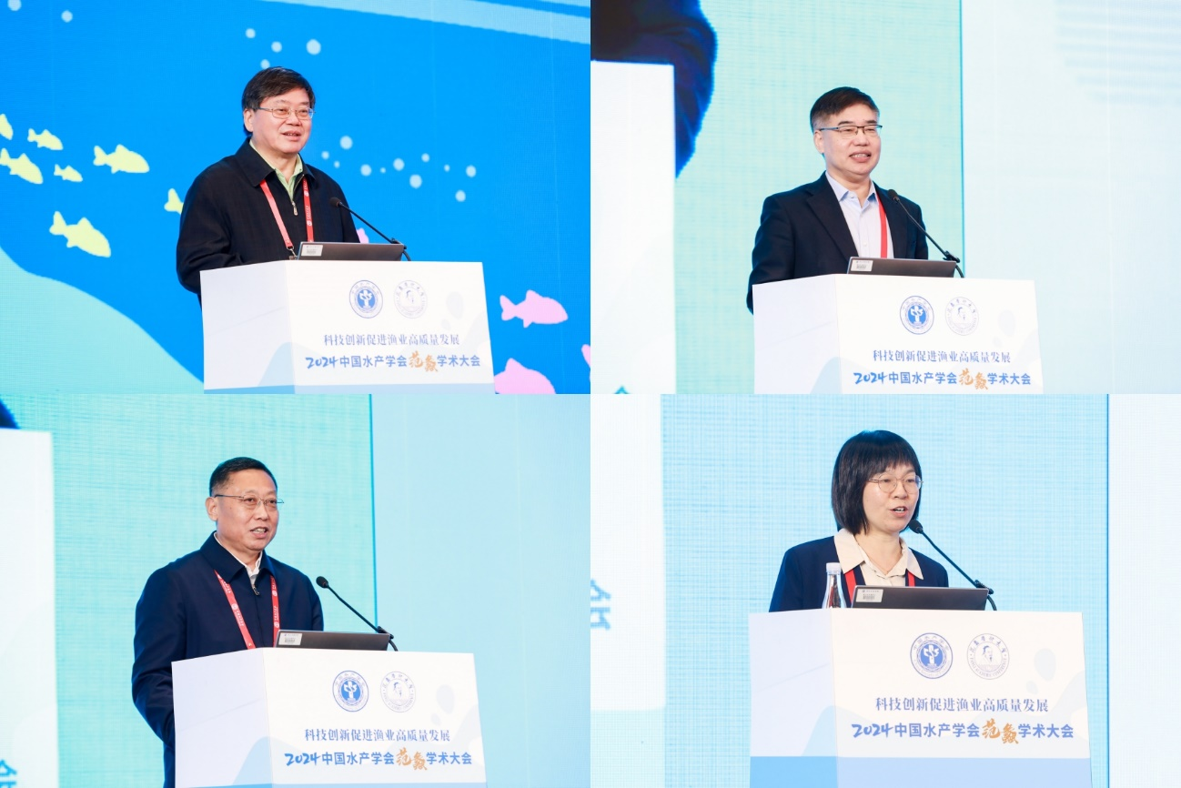 桂建芳院士、薛长湖院士、中国远洋渔业协会张显良会长,华中农业大学水产学院副院长高泽霞教授分别以“水产育种生物技术创新与未来水产养殖”“水产品加工发展趋势与科技创新”“‘大食物观’下的中国远洋渔业高质量发展”“鱼类肌间刺发育机制及无肌间刺淡水主养鱼培育”为题作大会主旨报告。