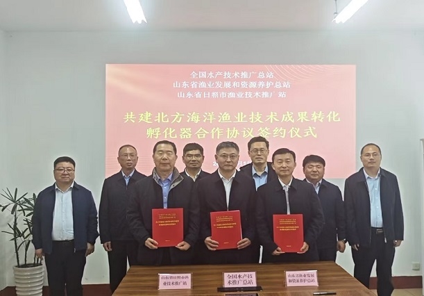 为认真贯彻习近平总书记关于“三农”工作的重要论述和视察山东重要讲话精神,助推山东省渔业高质量发展,4月1日,全国水产技术推广总站、山东省渔业发展和资源养护总站、山东省日照市渔业技术推广站聚焦新品种测试、新模式熟化、新装备展示、新渔人培育等重点领域,本着互惠合作、优势互补的原则,共同签署了共建北方海洋渔业技术成果转化孵化器合作协议。